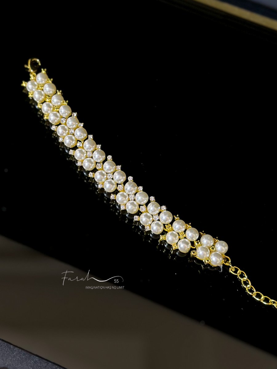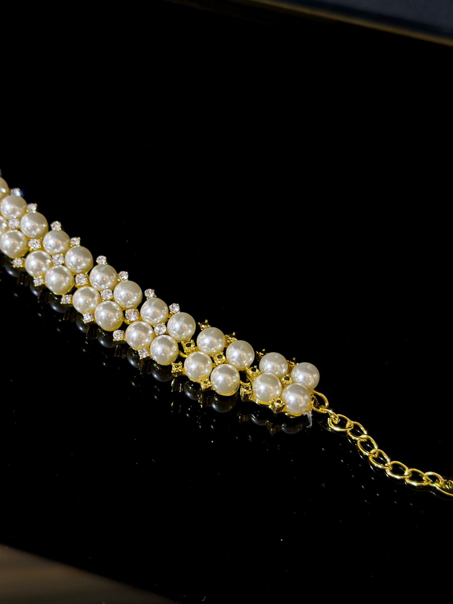 اسوارة تنس مرصعة بأحجار الزركون واللؤلؤ باللون الذهبي
