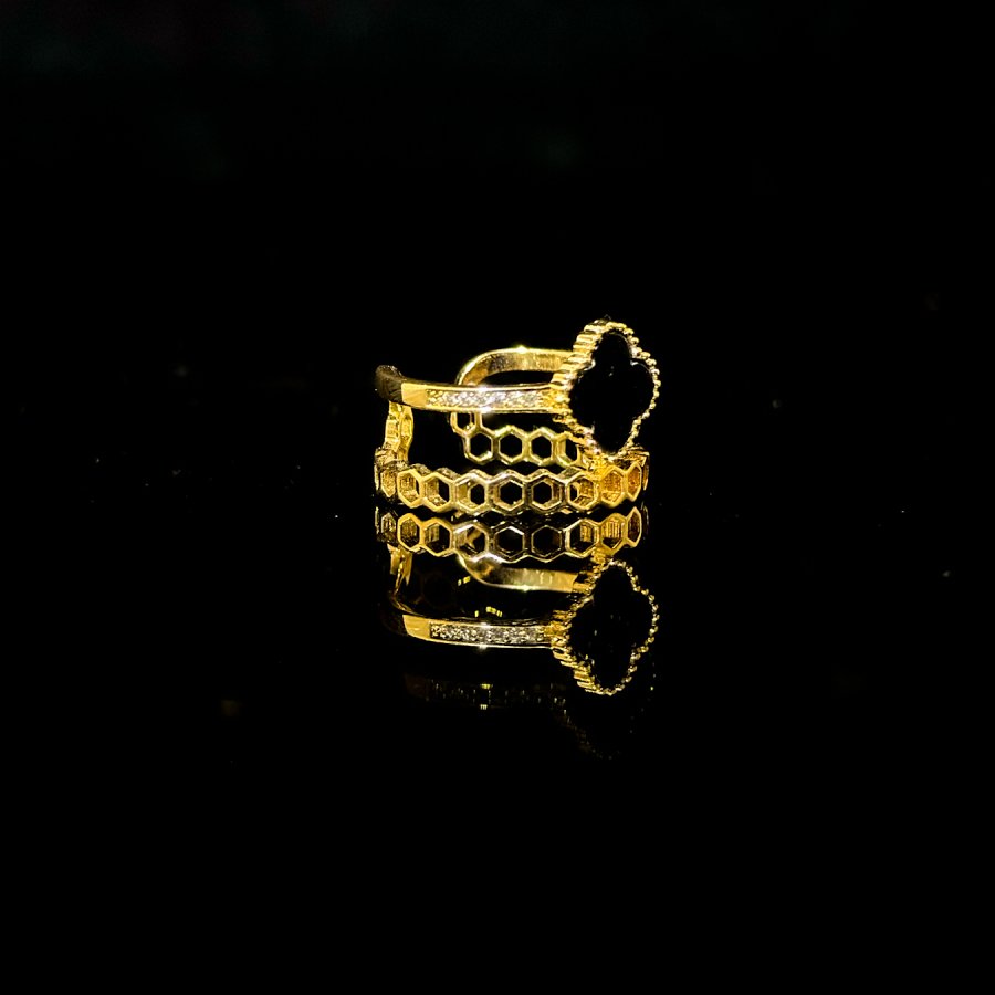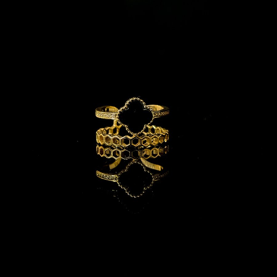خاتم van cleef باللون الأسود والفضي ‏One size