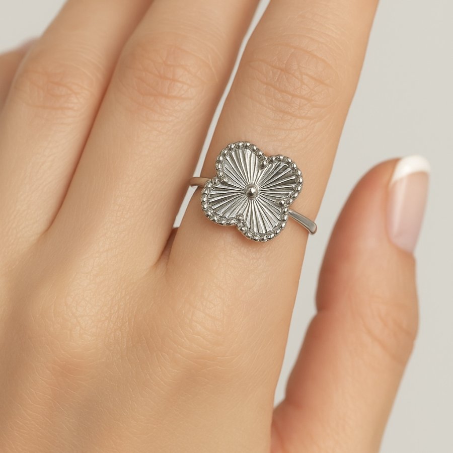 خاتم Clover Ring فضة عيار 925 مطلي بمية الدهب