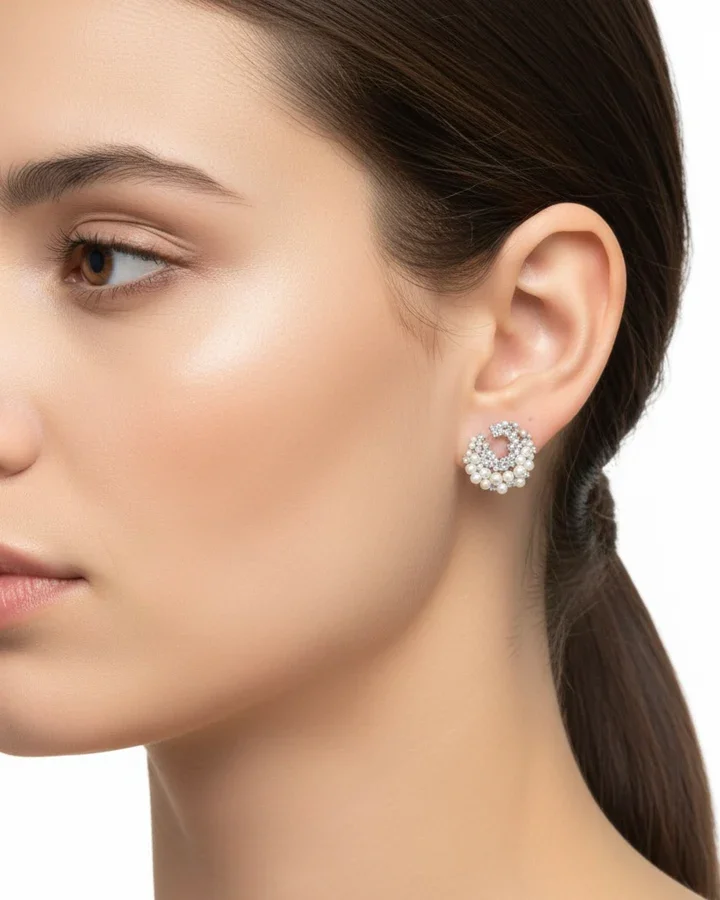 أقراط مرصعة بالزركون واللؤلؤ