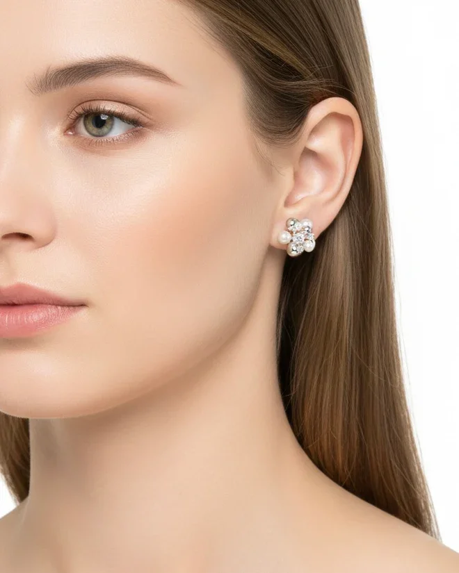 أقراط مرصعة بالزركون واللؤلؤ