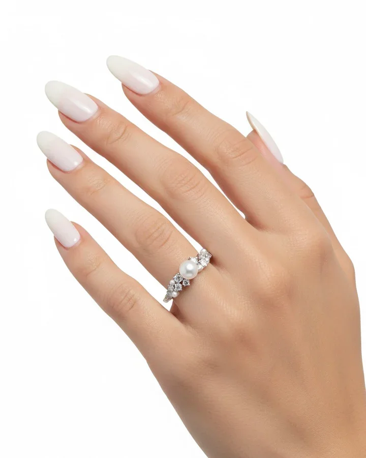 خاتم مرصع بأحجار الزركون واللؤلؤ