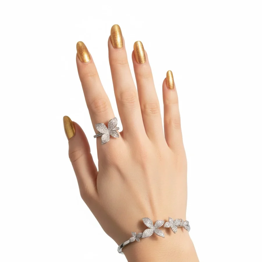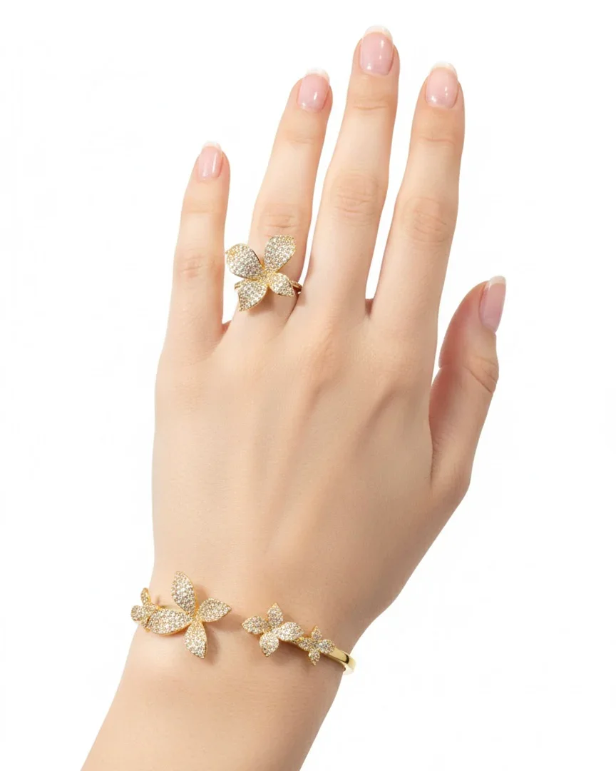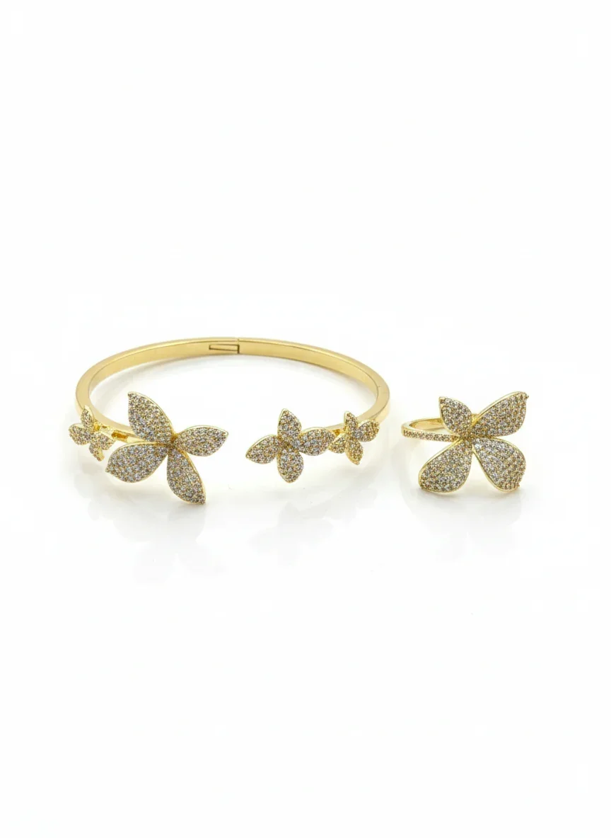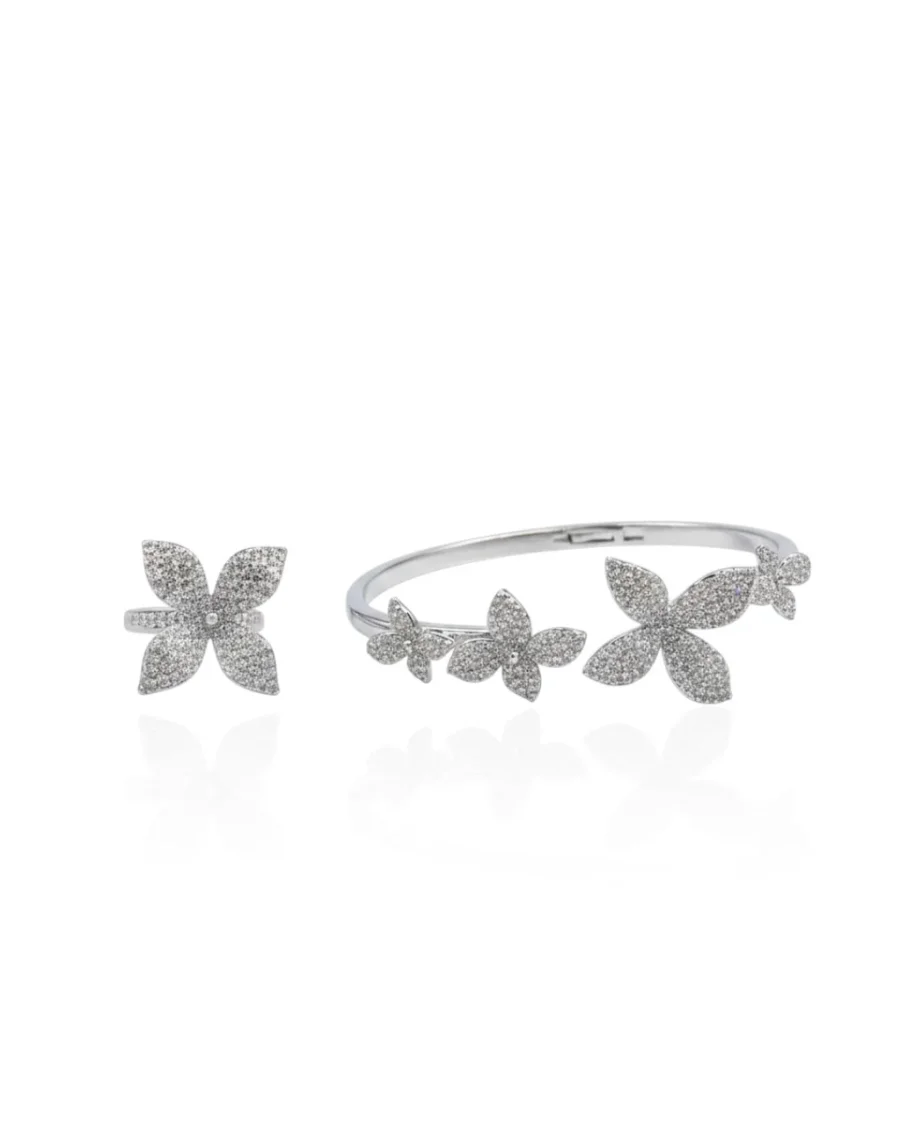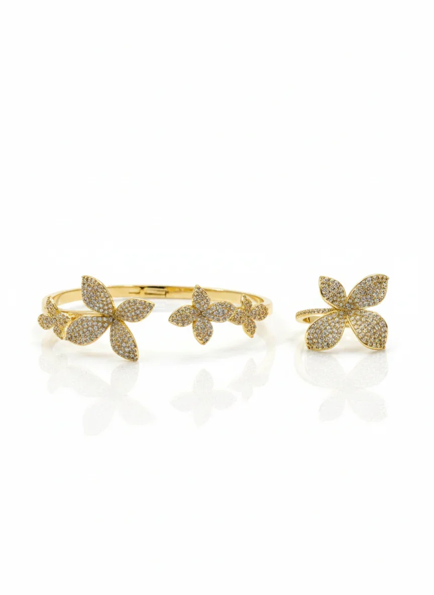 طقم الوردة اسوارة وخاتم بأحجار الزركون