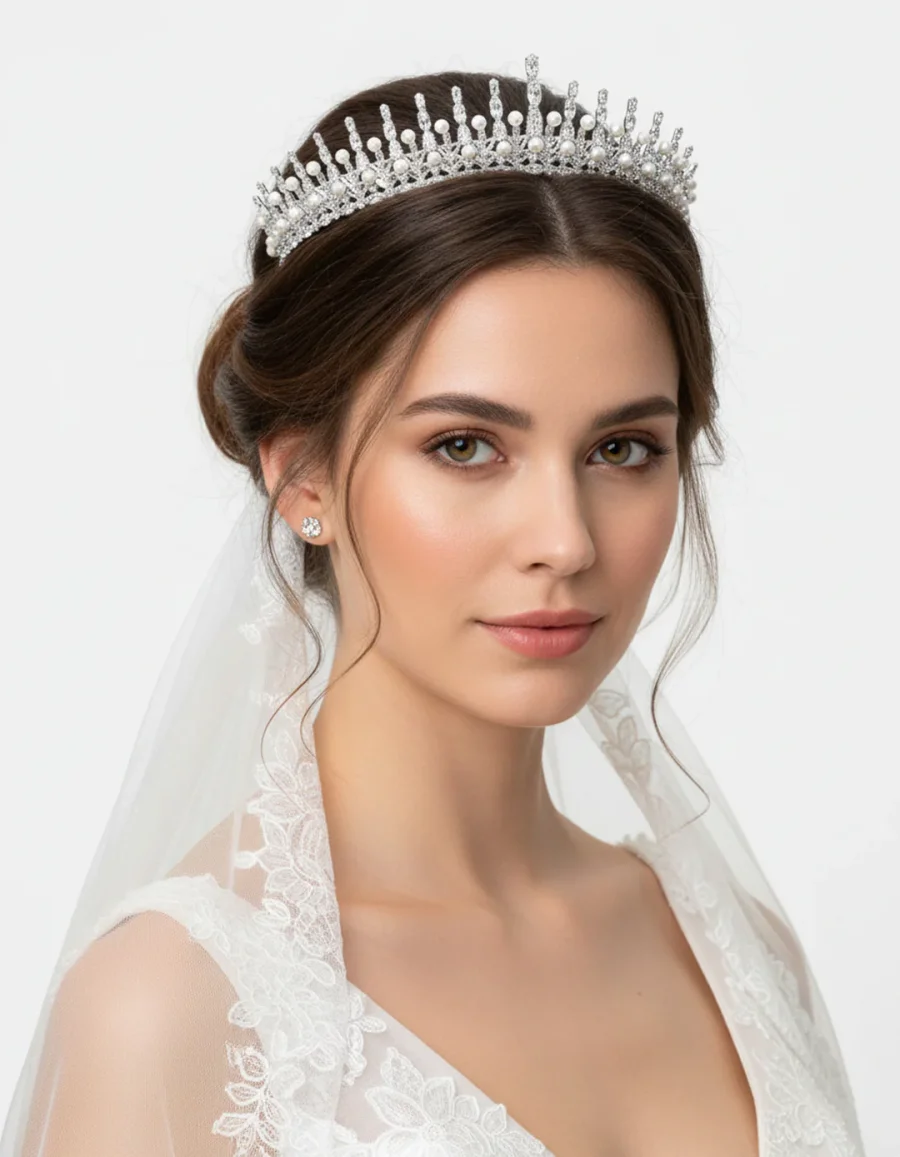 تاج بأحجار الزركون واللؤلو