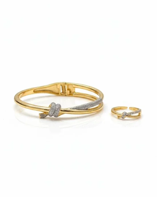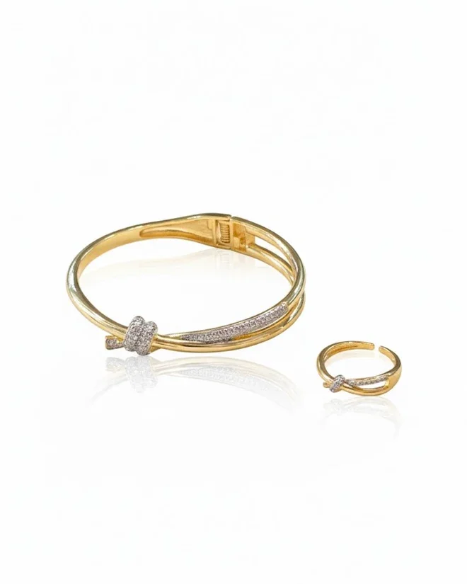طقم اسوارة وخاتم باللون الذهبي