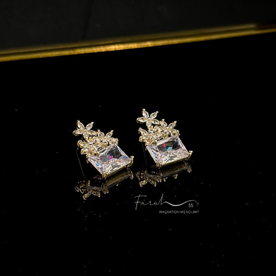 حلق مرصع بأحجار الزركون باللون الذهبي