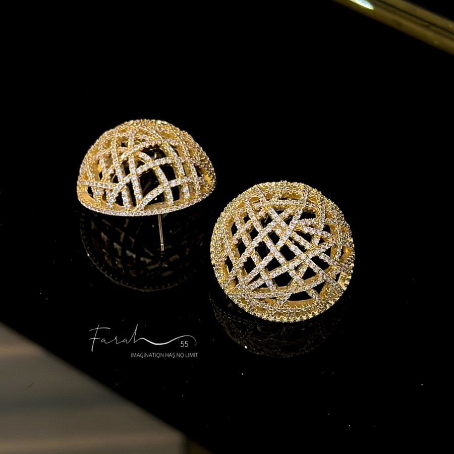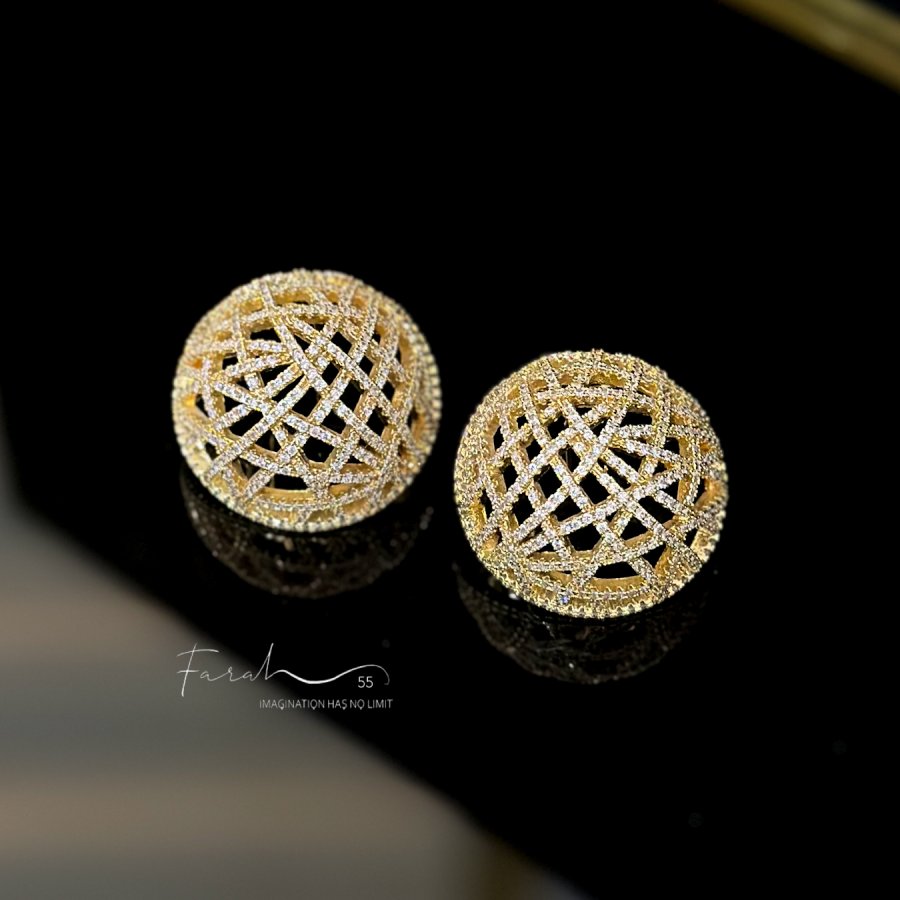 حلق مرصع بأحجار الزركون باللون الذهبي